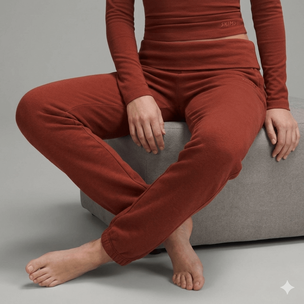 Streçe Skims Cotton Jersey Foldover Pant Brick – Komfort maksimal për stërvitje dhe përditshmëri.