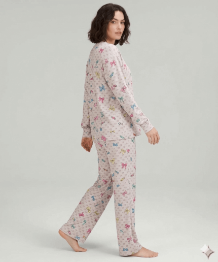 SKIMS BOYFRIEND LONG SLEEVE AND PANT SET CB CANDY BOW PRINT